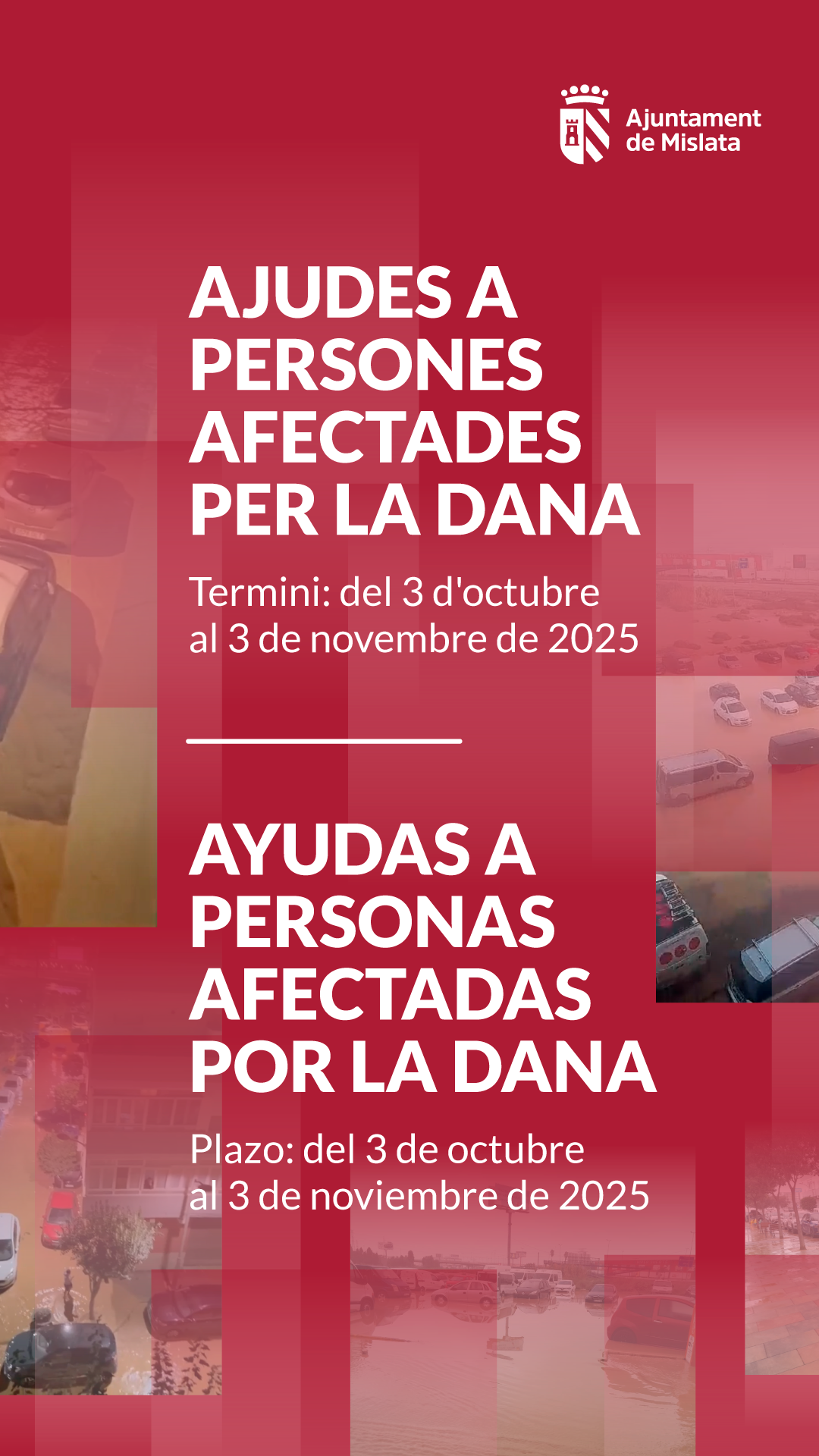 Convocatoria de ayudas económicas directas a personas físicas afectadas por la depresión aislada en niveles altos (DANA) sufrida el 29 de octubre de 2024 en el municipio de Mislata