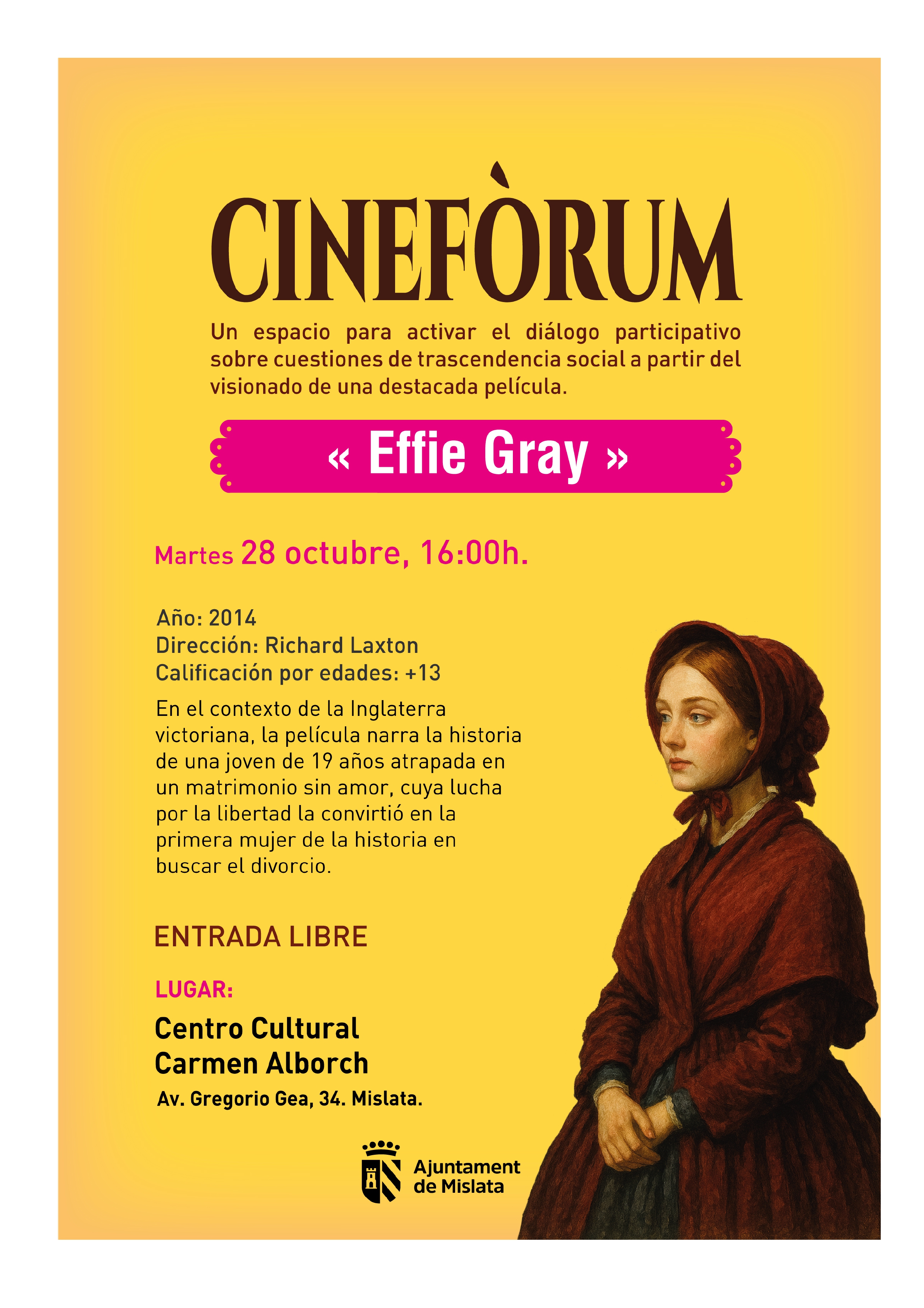 La actividad de Cinefórum tendrá lugar en el Teatro del Centro Cultural Carmen Alborch, Av. Gregorio Gea 34, el 28 de octubre con entrada libre.