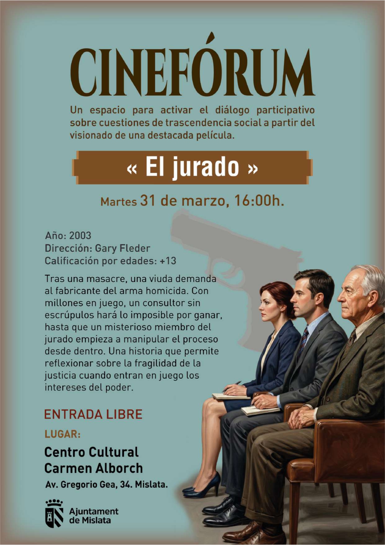 La actividad de Cinefórum tendrá lugar en el Centro Cultural Carmen Alborch, Av. Gregorio Gea, 34, con entrada libre