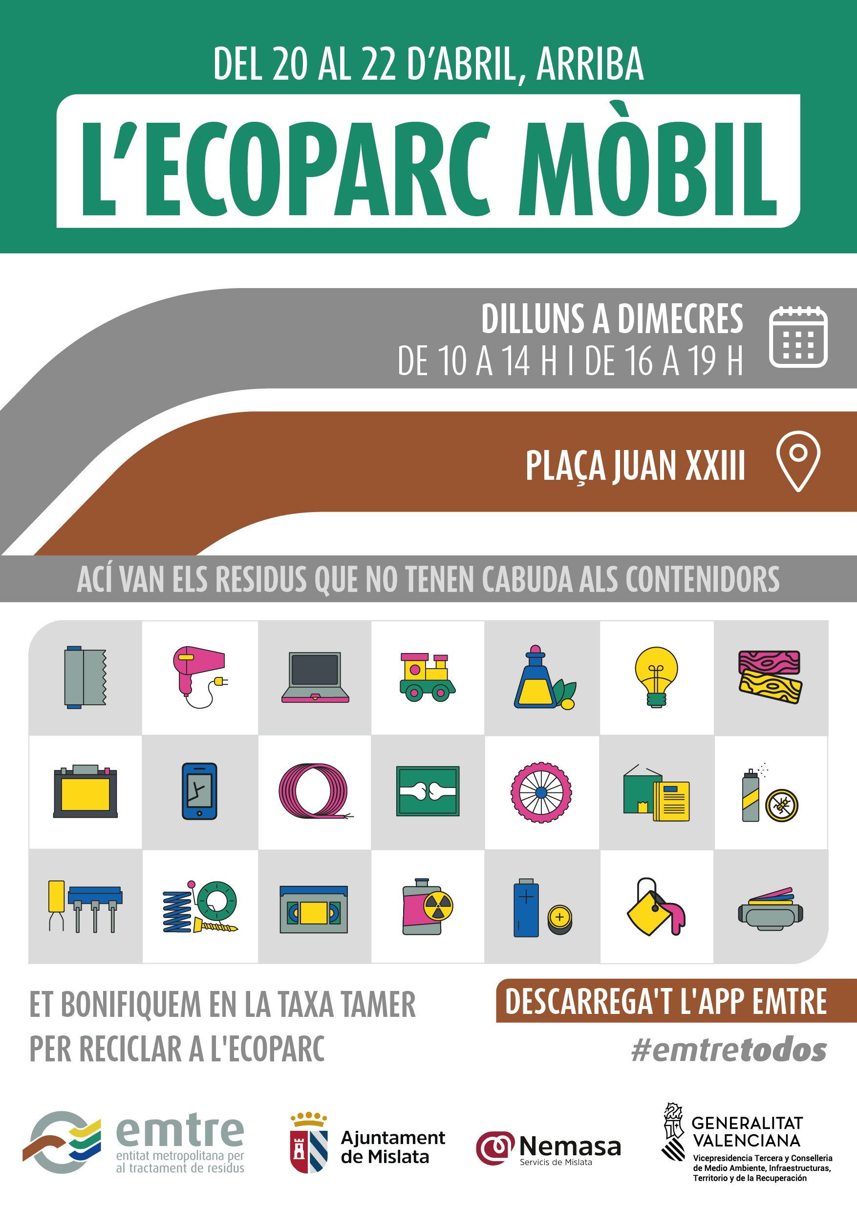 Vuelve el Ecoparque Móvil de EMTRE a Mislata los días 20 al 22 de abril en la plaza Juan XXIII.