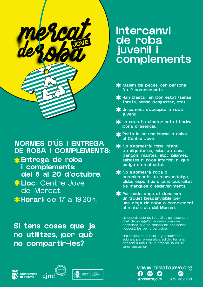 El Mercado Joven de intercambio de ropa es un acontecimiento para jóvenes de entre 12 y 30 años que quieren renovar su armario de forma totalmente gratuita y sostenible. Más que un simple intercambio, es una acción para concienciar sobre la reutilización y el consumo responsable, todo y disfrutando de un ambiente único.