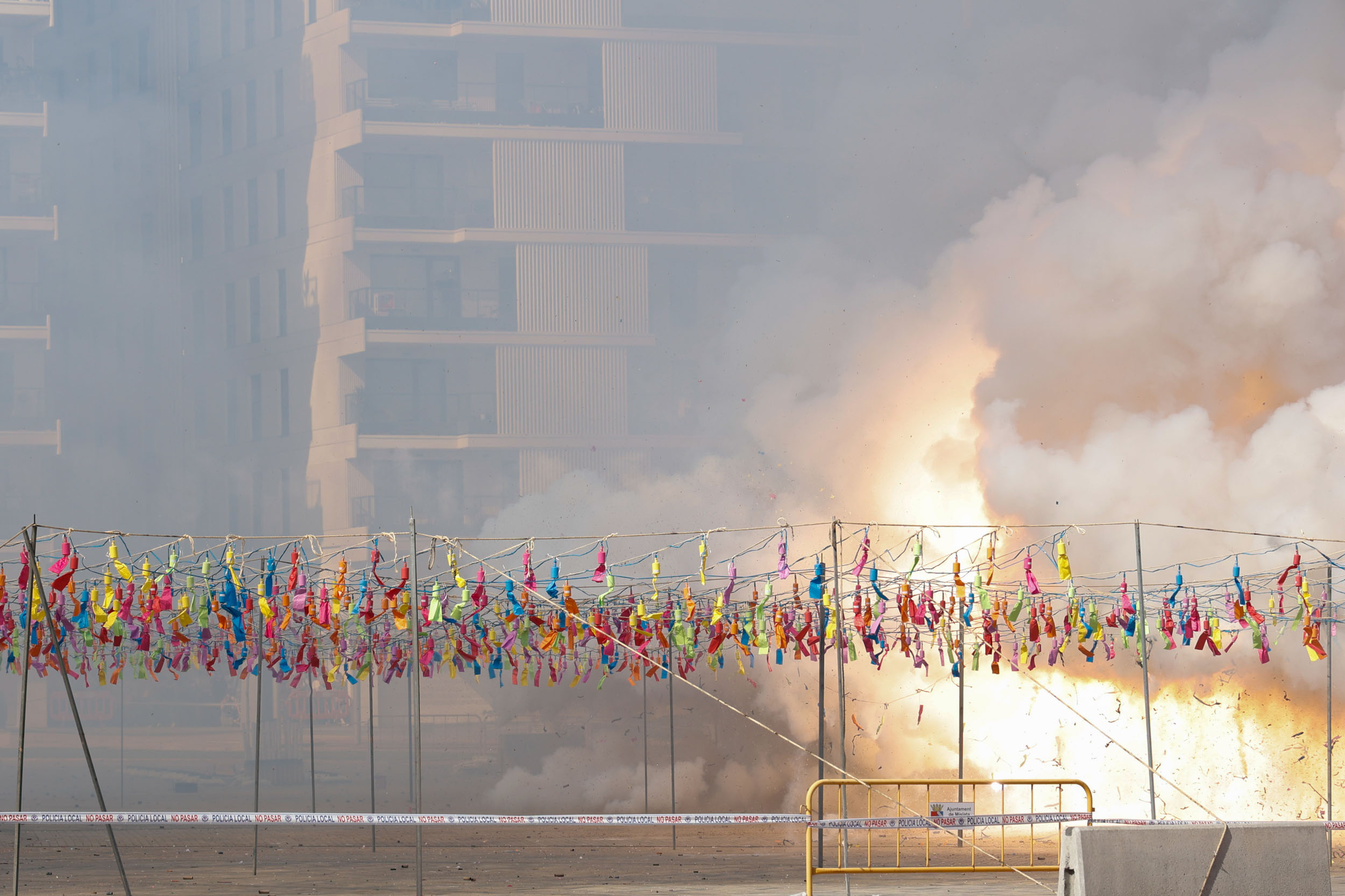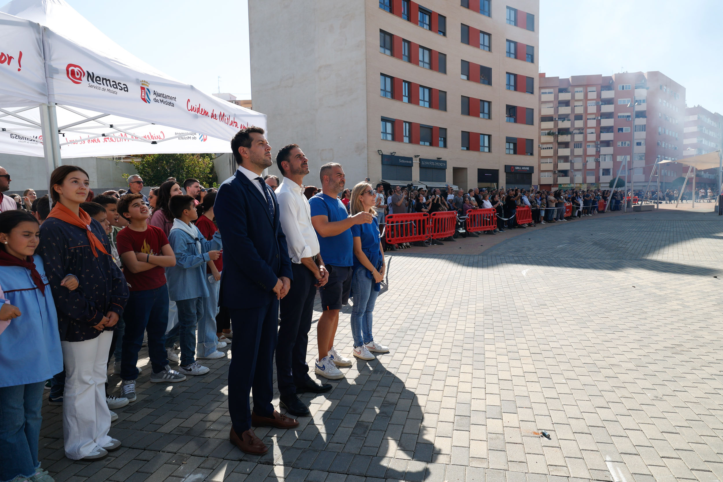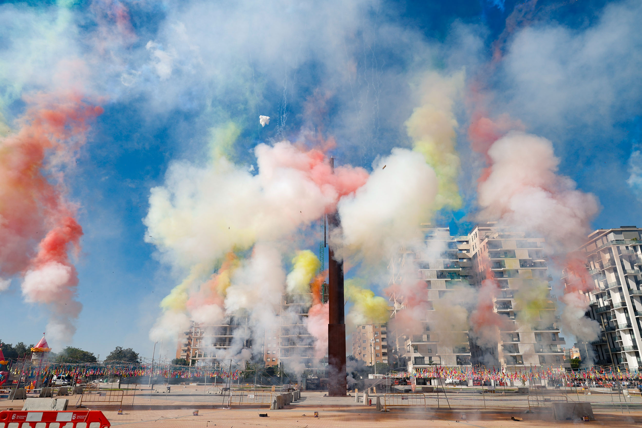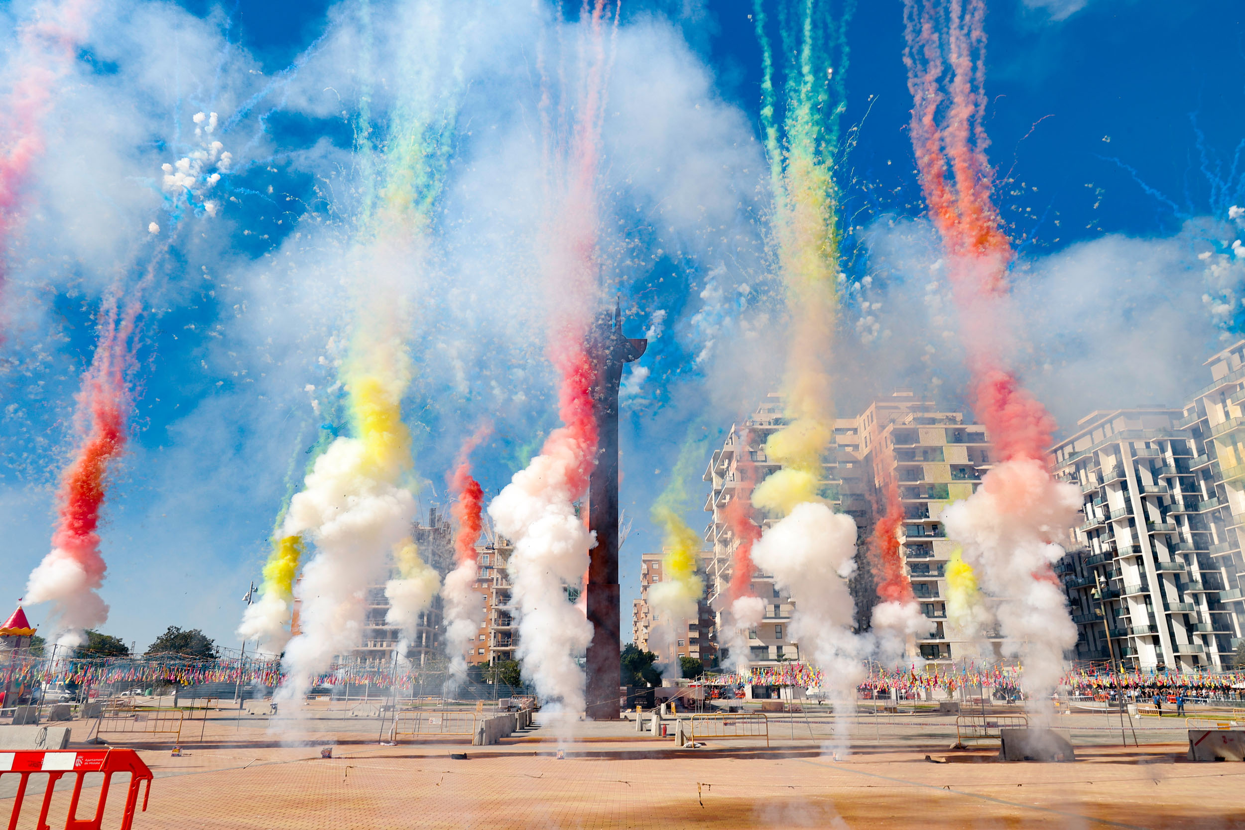 Tras finalizar el acto institucional con la interpretación de los himnos por parte de la Banda de la Unión Musical de Mislata, y para culminar con las celebraciones, se disparó una gran mascletà en la Plaza Mayor a cargo de la Pirotecnia del Mediterráneo.