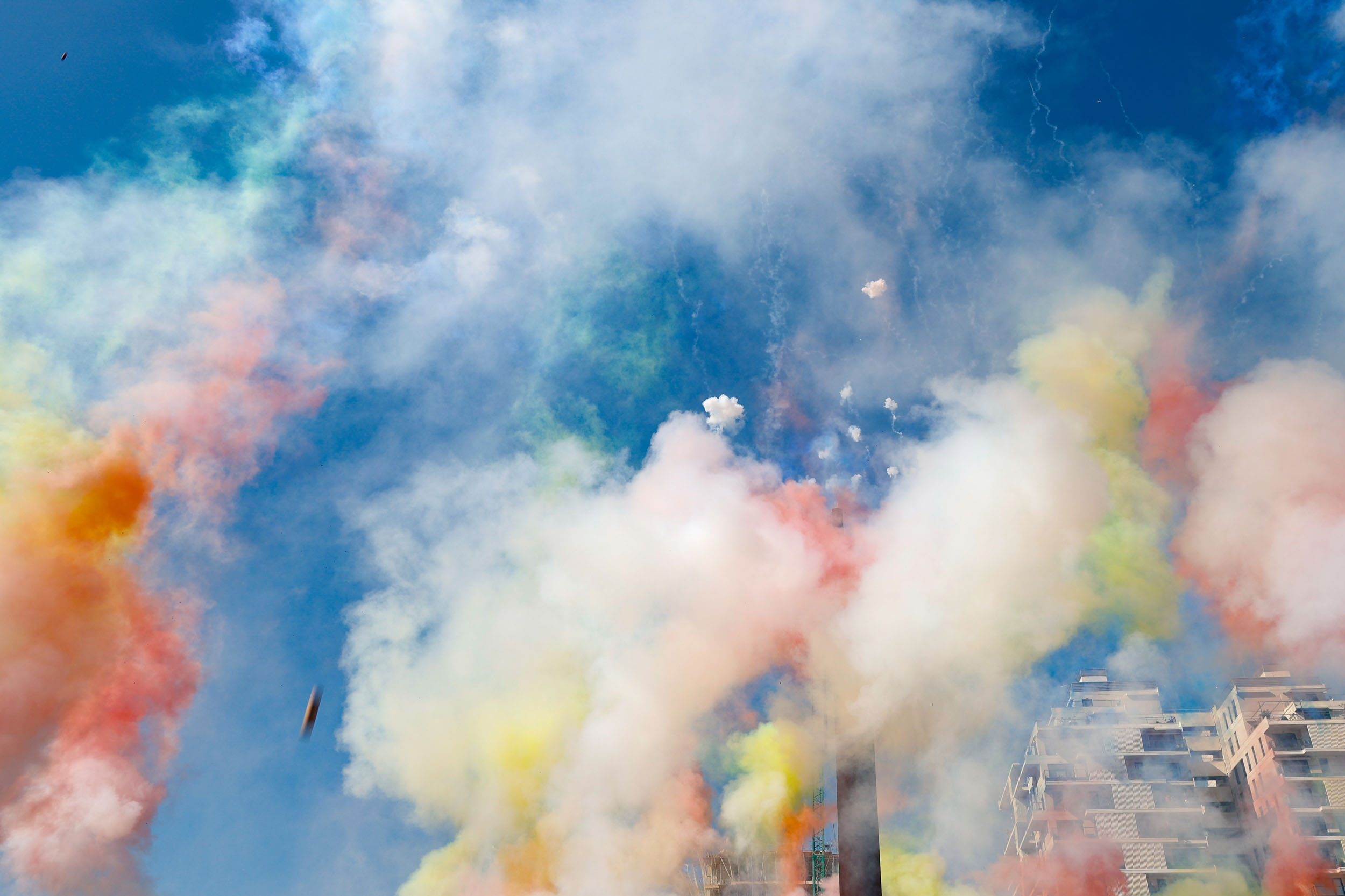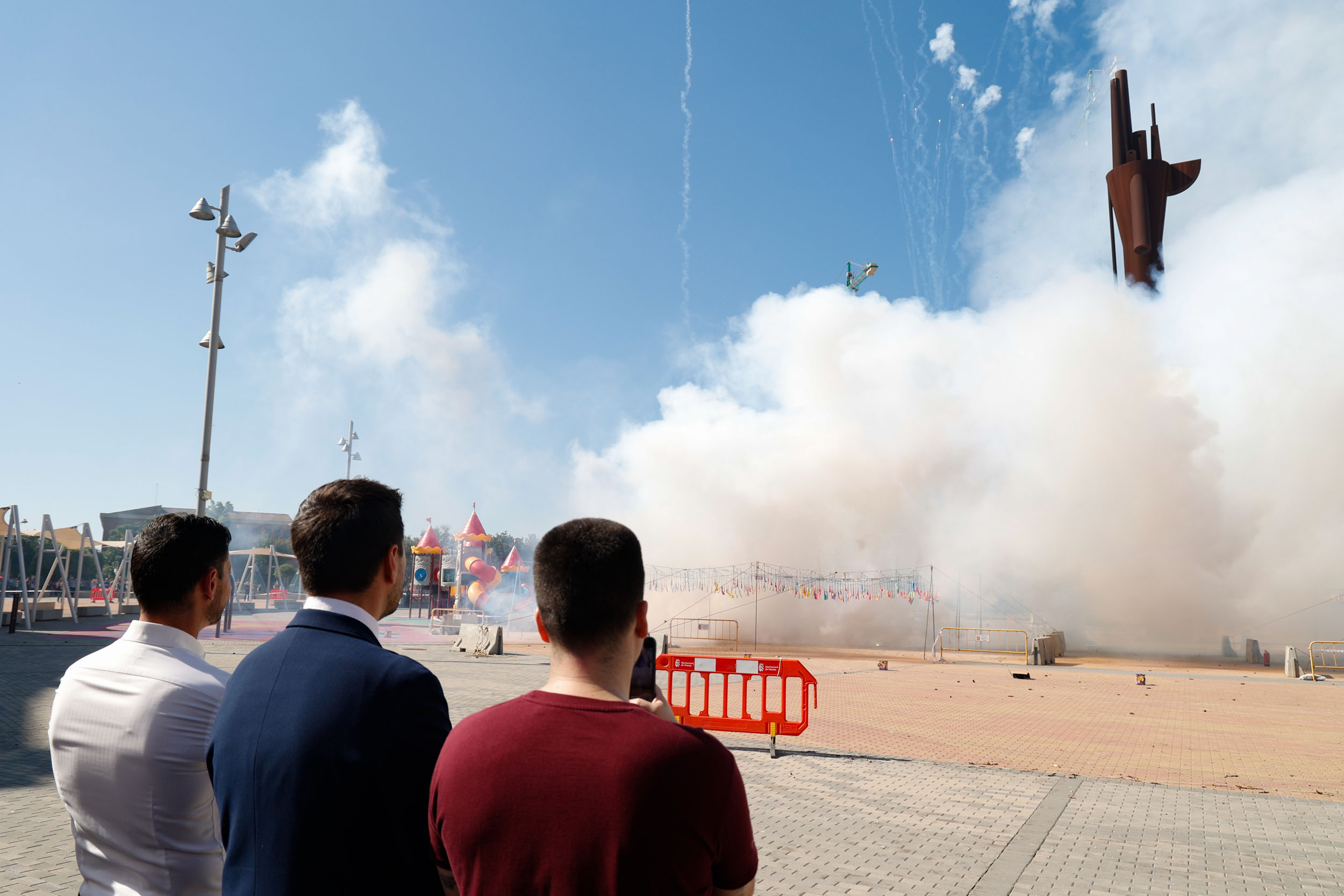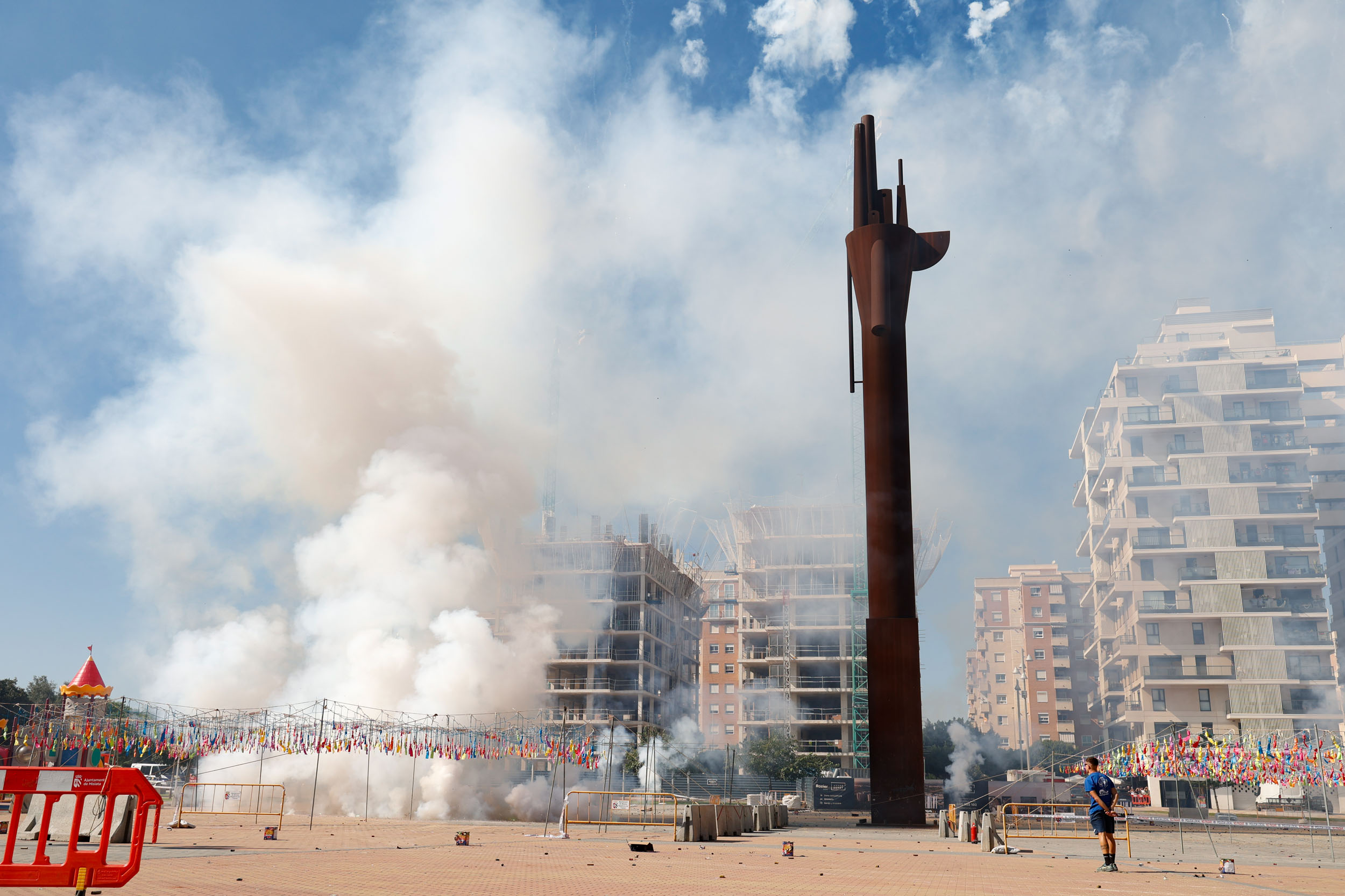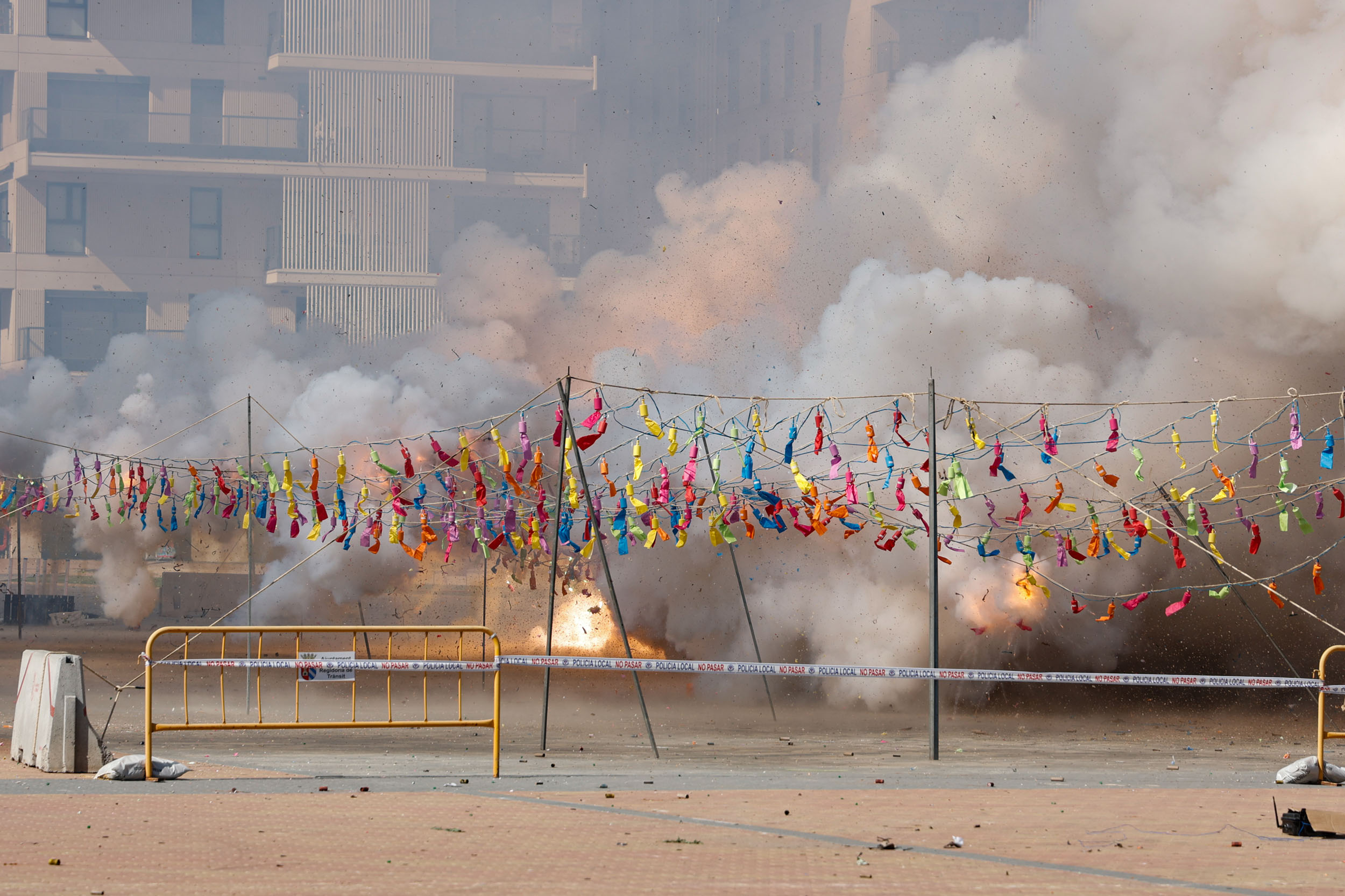 Tras finalizar el acto institucional con la interpretación de los himnos por parte de la Banda de la Unión Musical de Mislata, y para culminar con las celebraciones, se disparó una gran mascletà en la Plaza Mayor a cargo de la Pirotecnia del Mediterráneo.