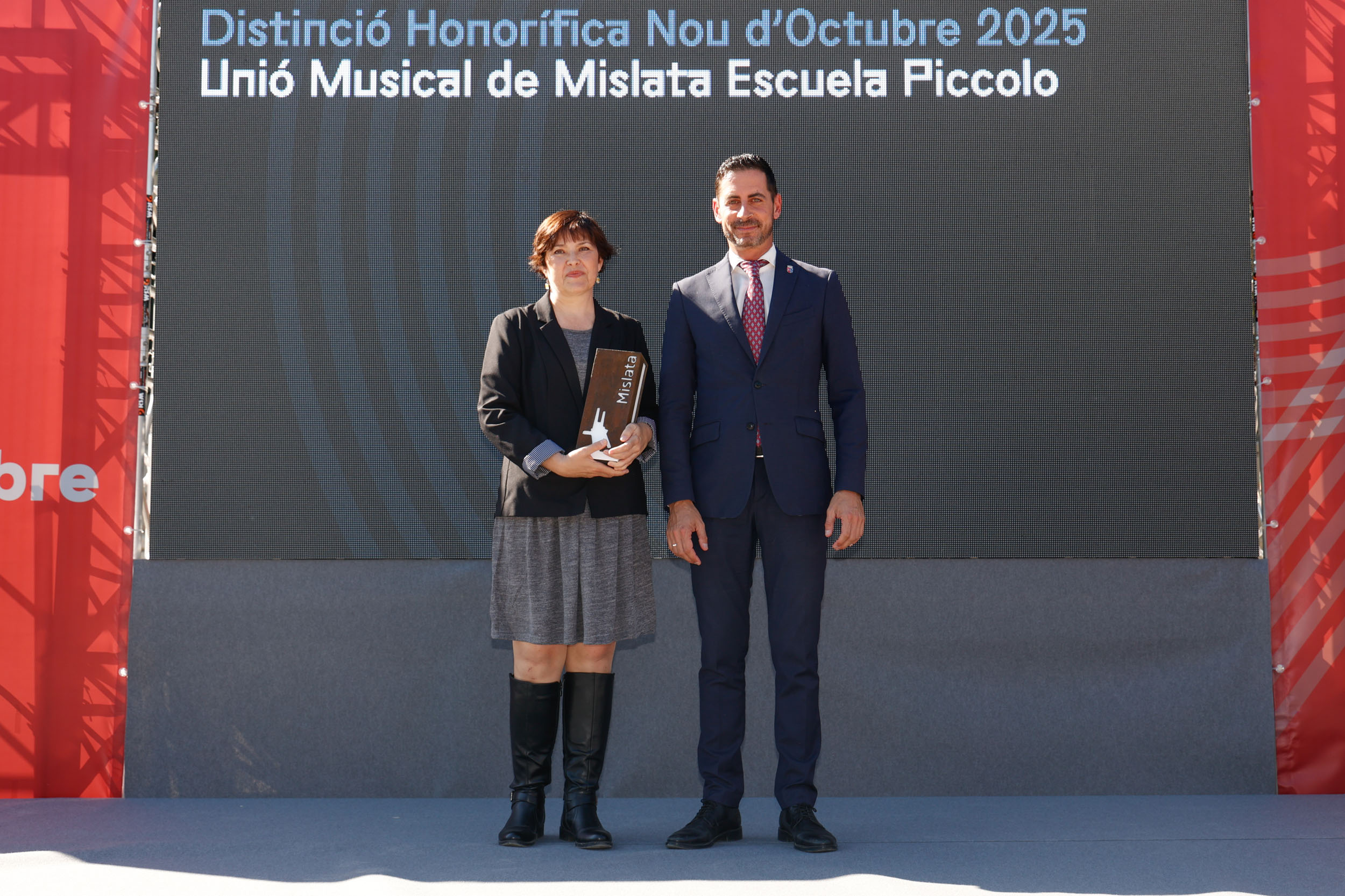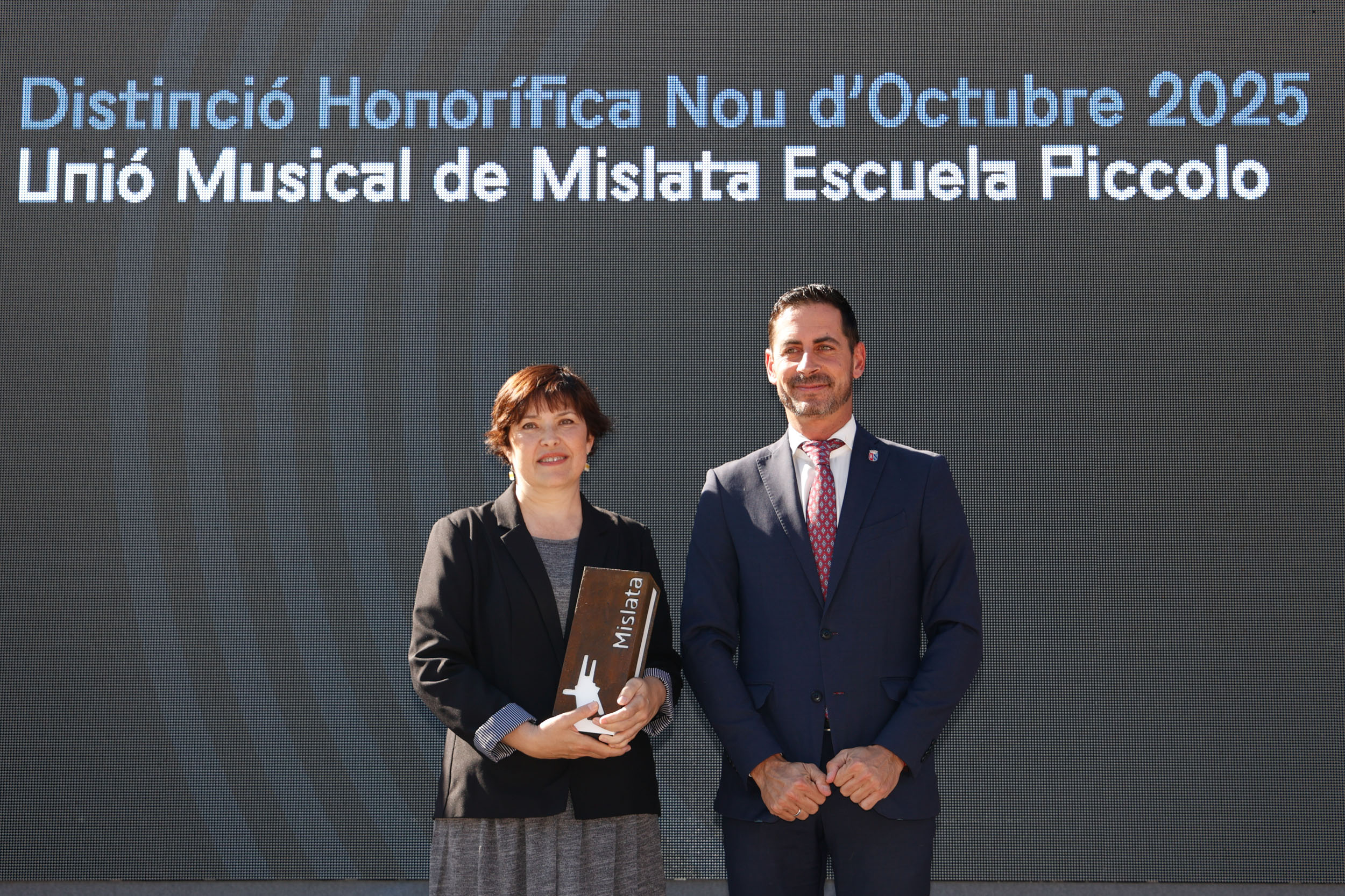 La primera de las distinciones este año ha recaído en la Unión Musical de Mislata Escuela Piccolo, por sus 25 años de trayectoria demostrando una implicación ejemplar en la enseñanza musical, y por haber hecho de la música un eje fundamental de la vida cultural del municipio, fomentando el arte y la afición entre generaciones.
