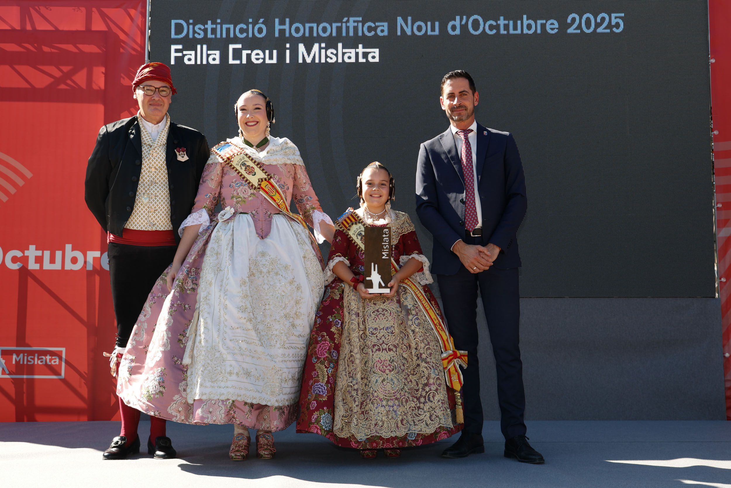 Con motivo de la celebración del Nou d’Octubre, y tras el aplazamiento del acto en su día a causa de las lluvias, el Ayuntamiento de Mislata ha entregado sus Distinciones Honoríficas que premian la labor realizada por personas o colectivos de Mislata, que en sus ámbitos o disciplinas han contribuido a hacer del municipio un referente. Los galardonados de este año han sido la Unión Musical de Mislata Escuela Piccolo, la falla Creu i Mislata, la actriz mislatera Empar Ferrer y Pepe Montañana, a título póstumo.