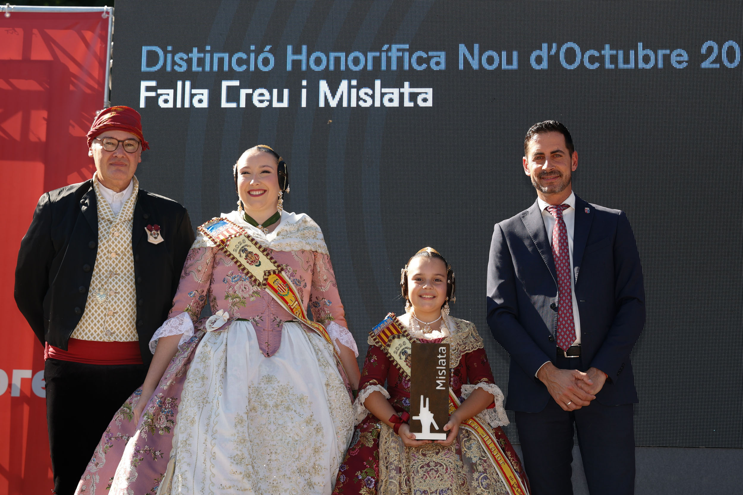 La segunda de las distinciones ha recaído en la Falla Creu i Mislata, por ser la primera falla que se plantó en nuestra ciudad y que ahora cumple 100 años, convirtiéndose así en la primera comisión centenaria de nuestra ciudad y fundadora de Junta Central Fallera.  Una entidad que activa las tradiciones, la cultura popular y la participación vecinal.