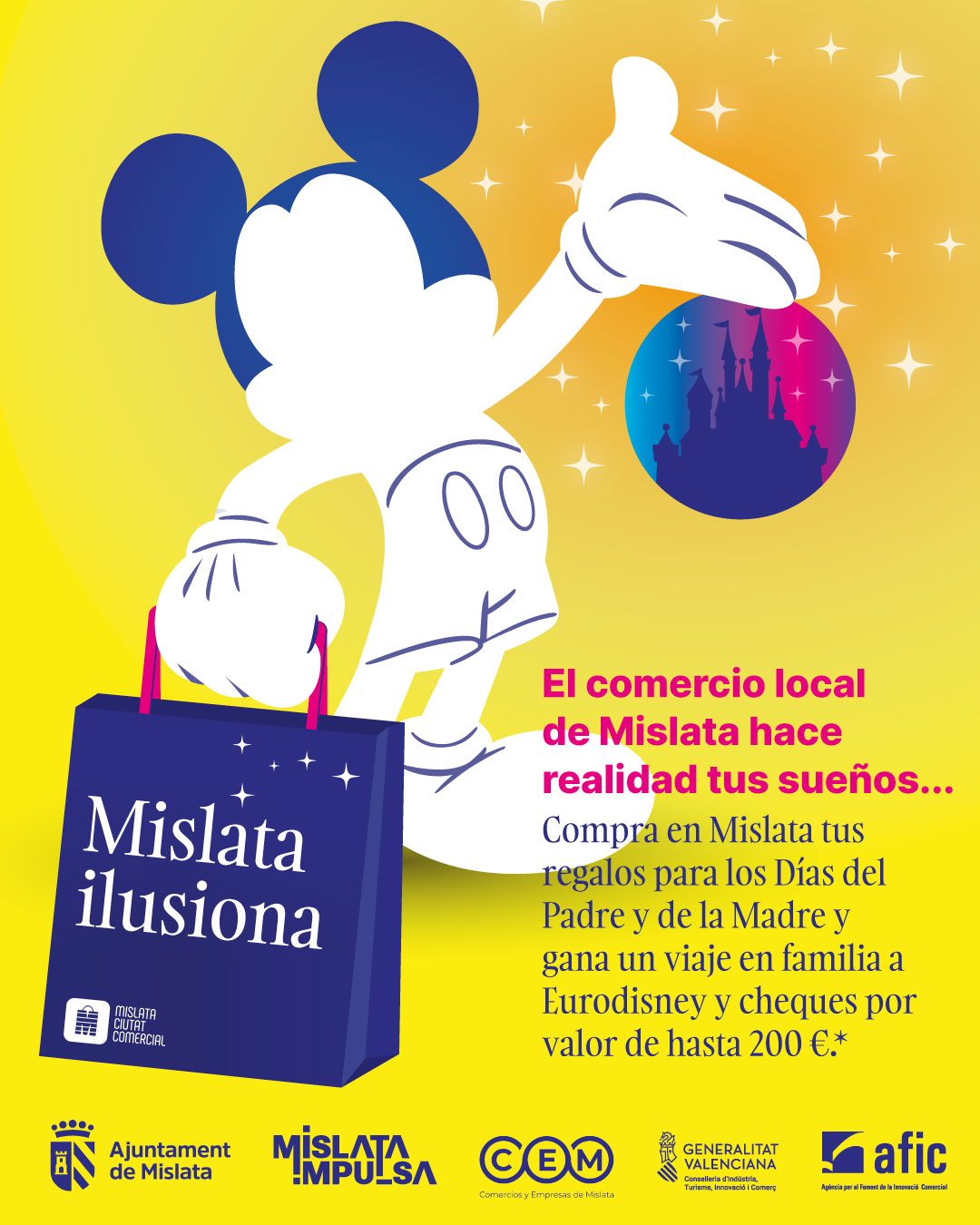 Para incentivar las compras y adquisición de servicios en los establecimientos y negocios, el Ayuntamiento de Mislata realizará un sorteo de un viaje a Disneyland Paris.