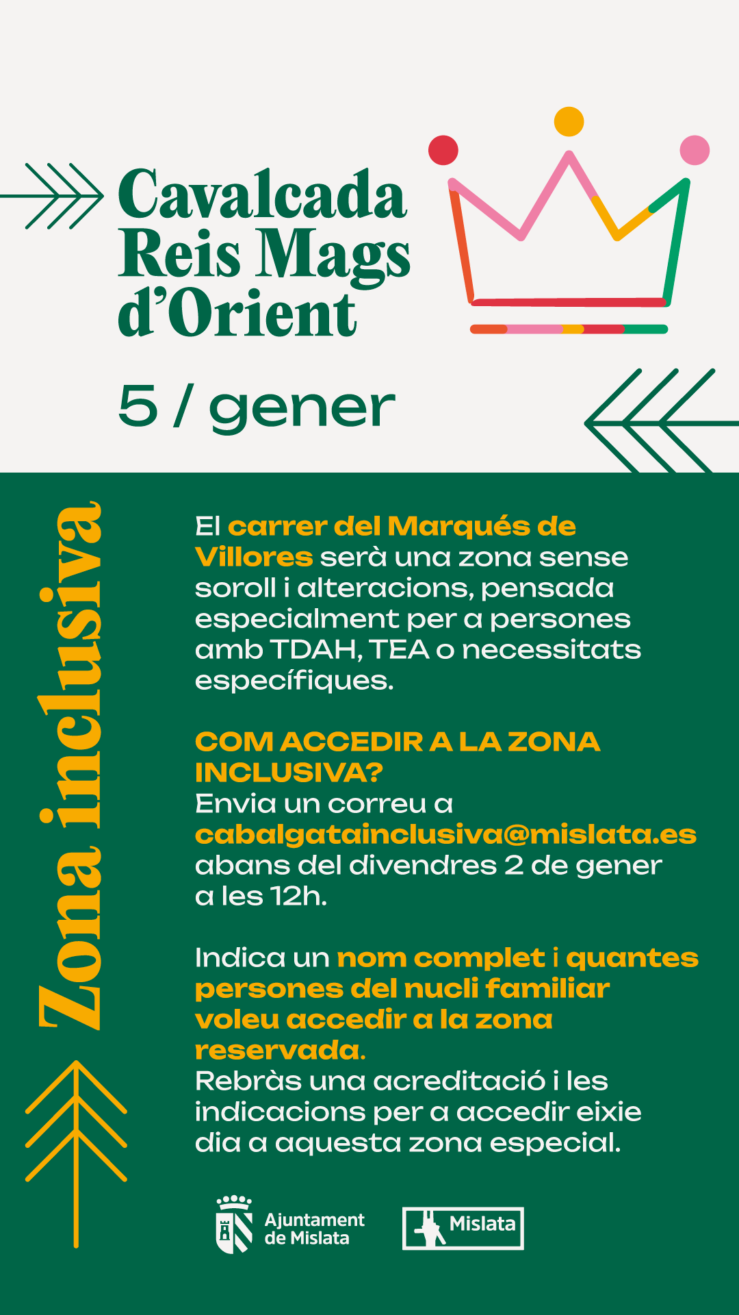 El carrer del Marqués de Villores serà una zona sense soroll i alteracions. Aquelles persones amb TDAH, TEA o amb necessitats específiques, poden sol·licitar l'accés a aquesta zona inclusiva a través del correu electrònic cabalgatainclusiva@mislata.es fins al divendres 2 de gener a les 12 h.