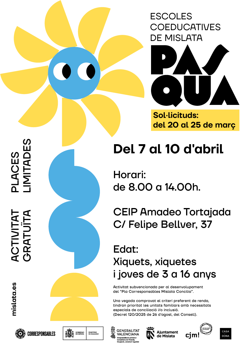 Activitat gratuïta, subvencionada pel desenvolupament del "Pla Corresponsables - Mislata Concilia".