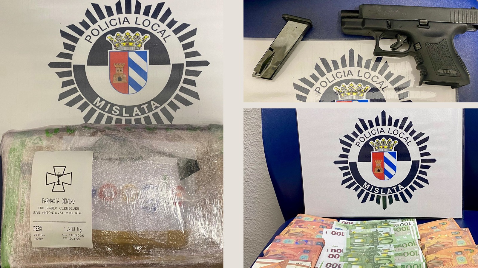La Policia Local de Mislata, en una actuació conjunta amb la Policia Nacional, ha desarticulat una operació de tràfic de drogues que es desenvolupava en el municipi. La intervenció s'ha saldat amb la detenció de tres individus en possessió de 1,2 quilograms de cocaïna, una pistola i una important quantitat de diners en efectiu, en concret 27.350 euros, que van resultar ser falsos.