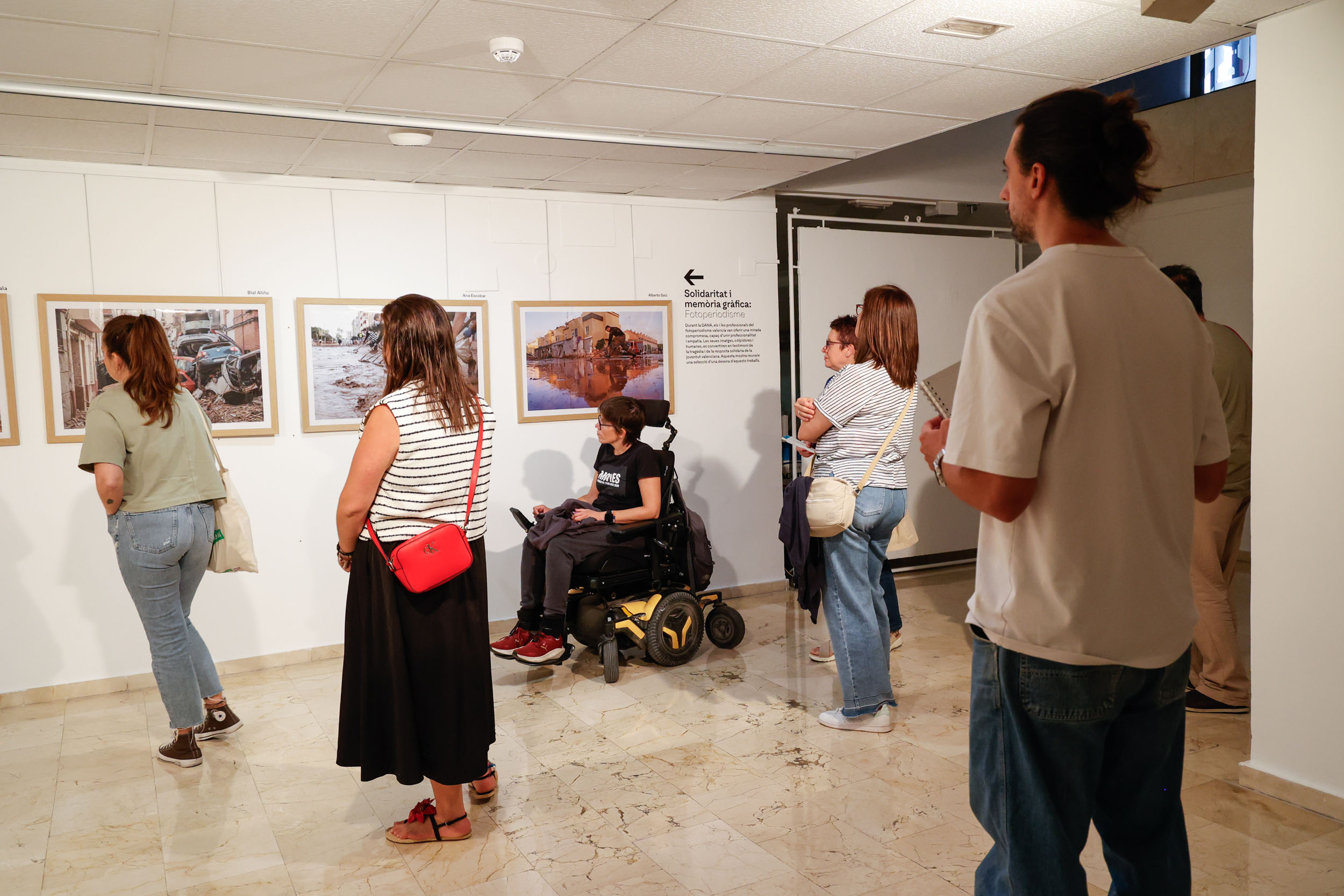Les peces gràfiques dialoguen amb les imatges de deu fotoperiodistes valencians -Eva Máñez, Tania Castro, Ana Escobar, Kai Försterling, Biel Aliño, Alberto Saiz, Miguel Ángel Montesinos, Eduardo Manzana, Daniel García-Sala i Mónica Torres - que van documentar tant la magnitud del desastre com la solidaritat que va mobilitzar a centenars de voluntaris, especialment joves, en els dies posteriors.