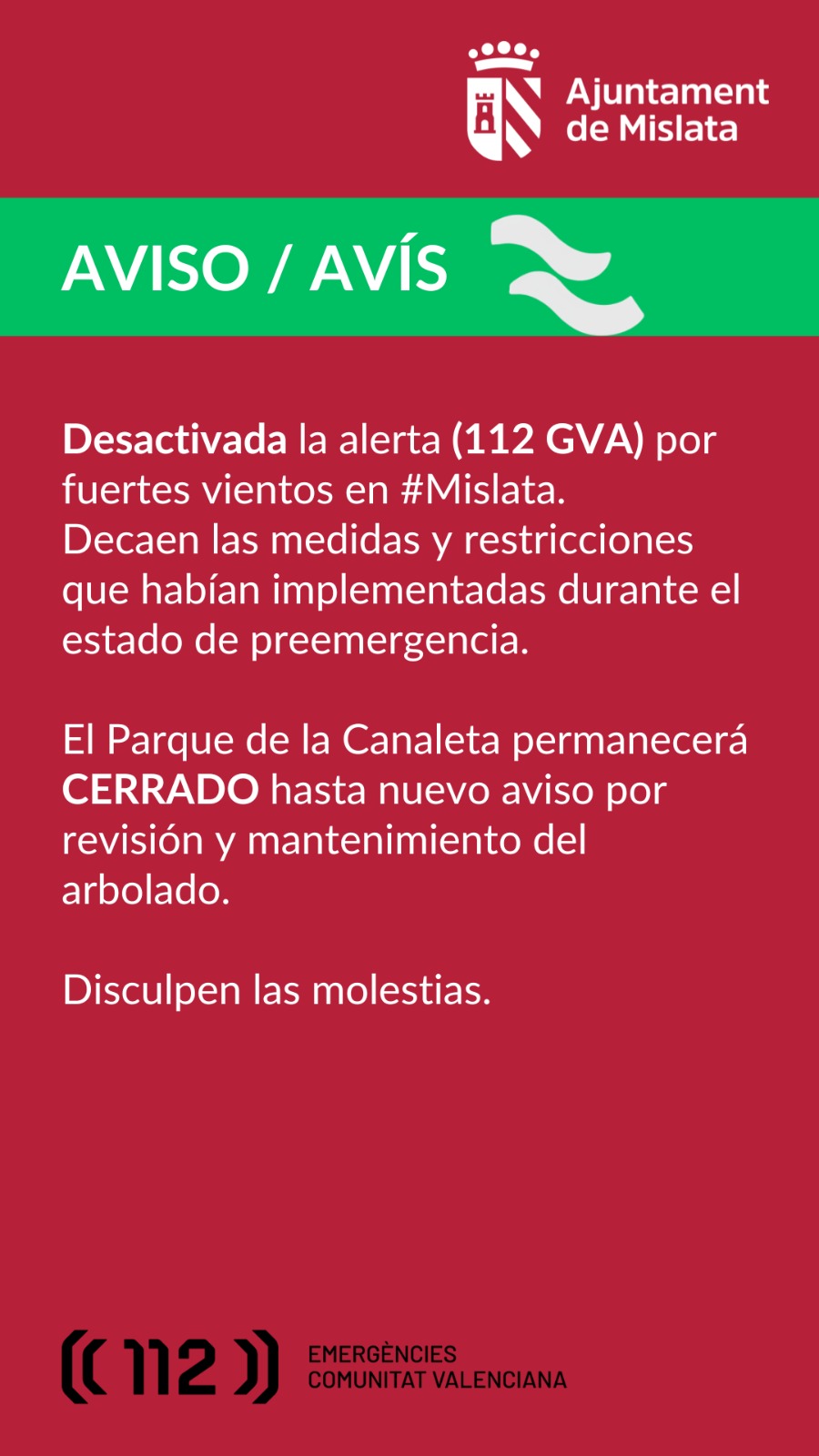 AVÍS. Desactivació d'alerta taronja per fort vent