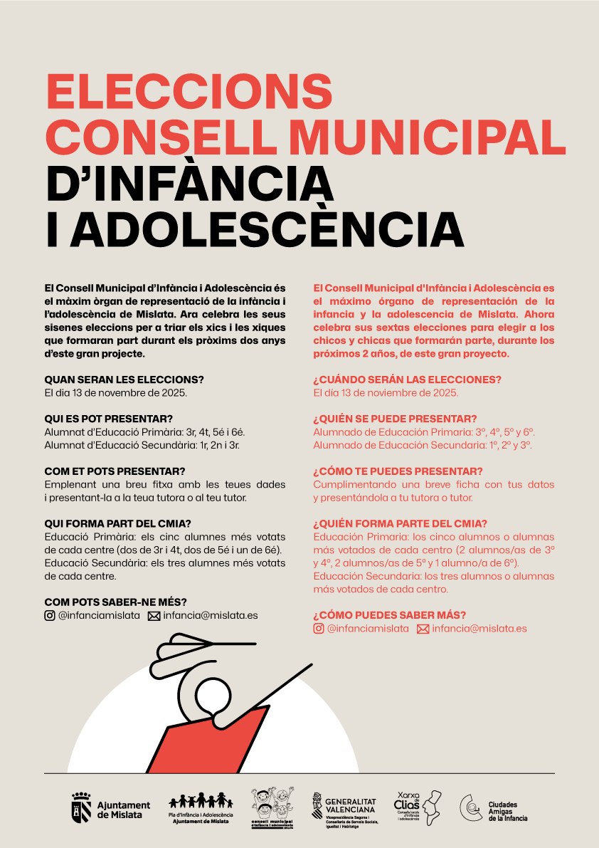 El Consell Municipal d'Infància i Adolescència porta en funcionament 12 anys. És el moment de celebrar les sisenes eleccions per a triar les persones que formaran part d'aquest òrgan de participació infantil.